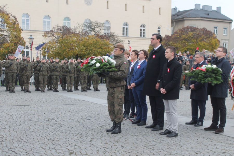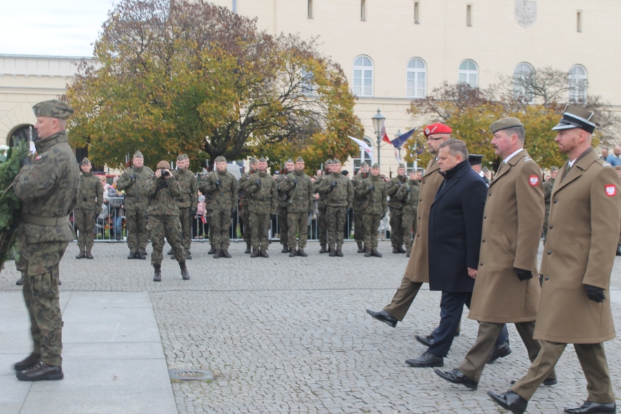 wartości patriotyczne umacniające narodową wspólnotę, tak ważną w sytuacji zagrożenia zewnętrznego . Wiceminister MON Wojciech Skurkiewicz podkreślił, że tegoroczne obchody ŚwiętaNiepodległości w Polsce odbywają się w cieniu regularnej wojny w Ukrainie. Ta wojna jest tragiczna nie tylko dla żołnierzy, ale również dla ludności cywilnej. Wolność trzeba więc pielęgnować w każdej chwili naszego życia, wspominając naszych bohaterów – mówił minister. Dodał, że dzisiaj Polak dla Polaka powinien być przyjacielem, wsparciem, ostoją i orężem w